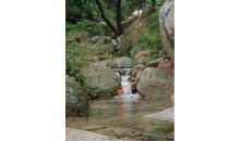 北九水以其麗山秀水繪就的優(yōu)美畫(huà)廊,馳名中外。嶗頂源泉之水從海拔1100多 米的高峰順勢(shì)而下,中途又匯集了眾多的溪流,凌空瀉入靛缸灣,又從靛缸灣溢出,沿著長(zhǎng)長(zhǎng)的深山峽谷,彎彎曲曲,時(shí)急時(shí)緩,時(shí)聚時(shí)散,奔騰而下。這樣一來(lái),再配以?xún)蓚?cè)群峰聳峙,禽鳥(niǎo)啼鳴,奇光薈萃,綠樹(shù)成蔭,山與水相互纏繞,形成了一步一景、一灣一色的瑰麗畫(huà)廊風(fēng)光。
