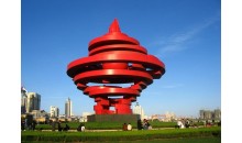 該雕塑以青島作為“五四運動”的導火索這一主題充分展示了島城的歷史足跡,深涵著摧人向上的濃厚意蘊。雕塑取材于鋼板,并輔以火紅色的外層噴涂,其造型采用螺旋向上的鋼板結構組合,以洗練的手法、簡潔的線條和厚重的質感,表現(xiàn)出騰空而起的“勁風”形象,給人以“力”的震撼。