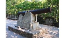 赤灣古炮臺位于廣東省深圳市南山區(qū)蛇口半島的深圳鷹嘴山頂端,分東、西兩側(cè)箝制赤灣港,雄視伶仃洋面?,F(xiàn)為深圳市文物保護(hù)單位。赤灣古炮臺位于“臨海山梁扼三面之險(xiǎn)”的蛇口半島頂端,分東、西兩側(cè)箝制赤灣港,雄視伶仃洋面。已修復(fù)的左炮臺挺立在海撥170米的鷹嘴山頭,占地面積約360平方米。炮臺城基用大塊花崗巖修砌,全高約3米多,北面是炮臺城的入口,城內(nèi)東西兩廂,仍遺留兩座房屋殘基,是當(dāng)年守炮臺士兵的居屋。