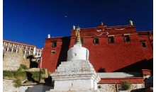 嘎東寺位于日喀則白朗縣年楚河以北16公里嘎東鎮(zhèn)境內(nèi)。嘎東寺歷經(jīng)寧瑪派、噶舉派、薩迦派,到十七世紀中葉開始盛行格魯派。寺中珍藏有舉世罕見的寶物,即該寺第四任堪布桑布欽布的兩條徑骨和空行母絲薩曲珍的頭顱。在桑布欽布右徑骨上端的骨縫四周天然生成著微小的釋迦牟尼、觀音菩薩、無量光佛、護法神、度母五尊佛像;左脛上端天然生成著微小的釋迦牟尼佛像和4個白色舍利;在度母化身空行母絲薩曲珍的頭顱上天然生成著三個藏文字母和度母像。原嘎東寺已被毀壞,1985年在原址上重新修建了嘎東寺。