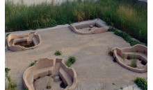 晉(317-420年)壁畫墓位于墓群南端的陶家莊。由于是70年代才開始發(fā)掘,所以并不被外界所熟悉。壁畫墓距地表12米,封土殘高2米,前有長33米,寬1.42米的斜坡墓道直通墓室,墓室全用平磚疊砌,分前后兩室,前室四壁和頂部布滿彩色畫面,后室只在后壁施畫。由于這里氣候干燥,壁畫保存基本完好,此墓的發(fā)現(xiàn),是河西走廊第一次發(fā)現(xiàn)東晉壁畫墓。