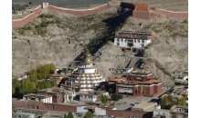嘎東寺位于日喀則白朗縣年楚河以北16公里嘎東鎮(zhèn)境內(nèi)。嘎東寺歷經(jīng)寧瑪派、噶舉派、薩迦派,到十七世紀(jì)中葉開始盛行格魯派。寺中珍藏有舉世罕見的寶物,即該寺第四任堪布桑布?xì)J布的兩條徑骨和空行母絲薩曲珍的頭顱。在桑布?xì)J布右徑骨上端的骨縫四周天然生成著微小的釋迦牟尼、觀音菩薩、無(wú)量光佛、護(hù)法神、度母五尊佛像;左脛上端天然生成著微小的釋迦牟尼佛像和4個(gè)白色舍利;在度母化身空行母絲薩曲珍的頭顱上天然生成著三個(gè)藏文字母和度母像。原嘎東寺已被毀壞,1985年在原址上重新修建了嘎東寺。