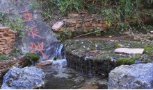 湯泉泉池用巨石甕成,冬日水氣為云,繚繞天際,每當(dāng)紅日凌空,彩虹映照,俯視泉池,旭日泉底,這便是昔日東陵八景之—一湯泉浴日。春秋日,池水清澈見底,無數(shù)氣泡從水底冉冉升起,猶如串串珍珠,如將銀幣投入水中,則見翻飛如蝶,緩緩下降,蔚為奇觀。