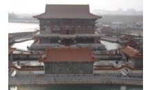 水師府位于振揚門北側(cè),為中軸對稱二進(jìn)式仿古建筑,坐北朝南分布,占地 3220平方米,建筑面積1100平方米。大門南向,正對振揚門,東西兩側(cè)分別建有四柱斗拱飛檐碑亭,亭內(nèi)分別立“忠”、“孝”字碑,二字相向。碑高皆三米,碑背分別刻戚繼光生平和戚景通(繼光父)生平。水師府為二進(jìn)式院落,每進(jìn)有正廳和東西廂房各一,且有回廊相連結(jié)。