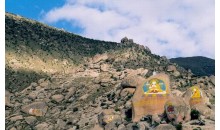 藏王墓屬全國重點(diǎn)文物保護(hù)單位,位于山南窮結(jié)縣宗山的西南方,背靠丕惹山(意為增長(zhǎng)之山),是吐蕃王朝時(shí)期第29代贊普至第40代(末代)贊普、大臣及王妃的墓葬群,總面積385平方米。各陵墓封土高大,為土壘成的高臺(tái)丘墓。其上層土墩為橢圓形,墩頂極平坦,東西長(zhǎng)約130米;下層為長(zhǎng)方形土臺(tái),周邊不齊整。藏王墓的數(shù)目現(xiàn)難確定,能看到的有八九座。