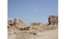 雅爾湖古墓群位于交河故城溝西臺地上,與交河城一溝之隔。整個墓區(qū)為一狹長臺地,墓葬群面積較大,達10萬平方米。僅于50年代發(fā)掘過3座墓葬,發(fā)現(xiàn)陪葬文物500余件。主要有陶器、壓花金片飾物、銅花瓣飾物、晶石紅串珠、開元通寶、波斯銀幣等,確定墓葬年代為曲氏高昌至唐代。