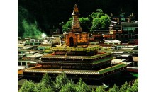 拉卜楞寺西南角,由三世貢唐倉?貢曲乎丹貝仲美大師建成于1805年,原名現(xiàn)見解脫大金塔,因塔內(nèi)供有從尼泊爾迎請(qǐng)來的無量光佛(阿彌陀佛)像而享譽(yù)海內(nèi)外,寶塔造型別致,工藝精巧,在建筑藝術(shù)與宗教意義上達(dá)到了完美神圣之境界?,F(xiàn)存寶塔由六世貢唐倉?丹貝旺旭大師為丕振宗風(fēng),宏教利民,而于1991年2月8日在原寶塔遺址舉行凈地儀軌,主持籌建。