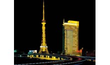 大慶廣播電視綜合塔位于薩爾圖區(qū)東風(fēng)路甲1號,是目前亞洲第三高、我國第二高,黑龍江省第一高的全鋼結(jié)構(gòu)廣播電視塔。塔結(jié)構(gòu)為管狀桿件,主塔身由729根主要構(gòu)件組成,是采用高強(qiáng)度扭剪螺栓連接的空間桁架結(jié)構(gòu)。塔基礎(chǔ)為樁基結(jié)構(gòu),共采用141根開口鋼樁,平均深度為27米??傊亓繛?,600噸。