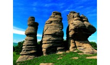 阿斯哈圖石林屬第四紀(jì)冰川遺跡,經(jīng)過幾百萬年風(fēng)沙雕琢,鑲嵌在遼闊大草原上,背靠著一望無際的樺樹林海。遠(yuǎn)望花崗巖石林猶如遠(yuǎn)古先人建造的城堡,平地突起,崢嶸險峻,滄桑破敗,有如千神駿馬,昂揚(yáng)頓丹、奔入眼底;近品石林,千姿百媚,如塔、如筍、如人、如門,如人工刻意雕琢;平衡石呼之欲來,飛來石趨之欲動;十八羅漢,九仙女,桃園三結(jié)義,栩栩如生,使人驚嘆大自然的鬼斧神工,堪稱世界奇觀。