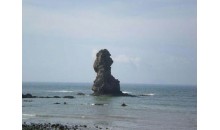 在嶗山腳下臨海斷崖南側(cè),距岸百米處有一座17米高的石柱,形如老人坐在碧波之中,人稱“石老人”。老公公以手托腮,注目凝神,每天晨迎旭日,暮送晚霞,伴著潮起潮落,歷盡滄桑,不知度過了多少歲月。