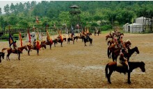 三國(guó)馬戰(zhàn)城的三國(guó)古戰(zhàn)表演是以三國(guó)時(shí)期為背景,再現(xiàn)《三國(guó)演義》中三英戰(zhàn)呂布的重要場(chǎng)面。 公元190年,18路諸侯為匡復(fù)漢室討伐董卓,在虎牢關(guān)前展開了一場(chǎng)殊死拼殺。桃園結(jié)義的劉備、關(guān)羽、張飛三兄弟在迎戰(zhàn)董卓大將呂布時(shí),體現(xiàn)了蓋世英雄的豪邁氣概。