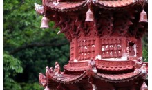 陶塔位于涌泉寺門前兩側(cè)。該對陶瓷千佛塔,高6.83米,于1972年從福州南郊龍瑞寺移來,用作鎮(zhèn)寺之寶。它是宋元豐五年(1082年)用陶土分層燒造,然后拼合累疊而成的。此類以陶燒造的寶塔,在國內(nèi)十分罕見。該對陶塔,東邊的稱“莊嚴(yán)劫千佛寶塔”,西邊的稱“賢劫千佛寶塔”。兩塔形式相同,均為八角九層,每座塔壁均貼有雕塑佛像1078尊,八角塔檐上有四方佛72尊,懸掛陶制塔鈴72枚。石砌塔座刻有金剛力士、蓮瓣、舞獅等,刻銘文記述建造時間和捐獻者以及造塔工匠的姓名。