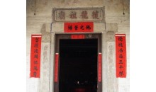 護龍祖廟在端州區(qū)黃崗鎮(zhèn)前村,始建于清初,同治十年(1871)重修。四周古樹懷抱,環(huán)境清幽,有小溪潺潺流過,廟前遠眺,田園秀色一覽無遺。廟為三進院落四合院式布局,面積136平方米,大門上方鑲嵌楷書“護龍祖廟”石匾,前后殿為硬山頂,面寬進深均三間,建筑物前設(shè)“低頭牽”,抬梁與穿十混合式梁架結(jié)構(gòu),兩殿之間以平面方形的卷棚頂廟亭相連,亭兩側(cè)空地邊緣,還用矮墻連貫前殿與后殿,使之渾然一體。