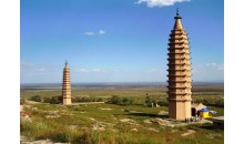拜寺口雙塔是一對磚砌佛塔山口東側(cè)的塔稱為東塔是一座正八角形建筑,高13層,每層塔檐下,各面都有各種獸頭的浮雕,西塔也是13層高,較東塔粗壯外形呈拋物線狀,曾發(fā)現(xiàn)梵文、西夏文題記和元代銀幣等。在銀川市西北約50公里處的賀蘭山東麓的拜寺口內(nèi),坐落著一對古塔,它們就像兩個孿生兄弟守衛(wèi)在山口兩旁,顯得格外挺拔。拜寺口雙塔坐落在賀蘭縣西部的拜寺口。