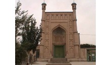 汗騰格里寺位于市南門。因寺院地處南門,故得名南門大寺。1902年進行過重建,1987年前,在原來南關清真寺的基礎上又加以擴建,改用今名“汗騰格里”(王中之王的意思),是市內(nèi)較大的維吾爾族清真寺之一。重建后的大寺,位于南門臨街,坐西向東,外觀壯麗,造型美觀,四座高大尖塔,簇擁著中間的大圓屋頂,兩側另有兩個小圓頂陪襯,具有濃郁而典雅的伊斯蘭建筑風格。