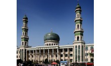 庫(kù)爾勒清真大寺位于庫(kù)爾勒市中心"老城"地方,1987年重建,規(guī)模宏偉,整潔寬敞,裝飾華麗,建筑風(fēng)格頗新穎。殿堂、院內(nèi)可同時(shí)容納7千僑匯人作禮拜。迎街門樓高25米,分7層,每層有房間若干,為阿訇、毛拉司事休憩之處。殿堂內(nèi)設(shè)冷風(fēng)機(jī),頂棚高懸吊燈、吊扇。