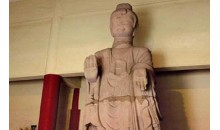丈八佛石造像亦稱興國(guó)寺石造像,坐落在山東省博興縣城東南10公里處的寨郝鄉(xiāng)寨高村西北角,因其身高丈八,俗名丈八佛。佛像坐北面南,全高6.75米,底座高1.5米,底面積7.29平方米,為單身立式圓雕青石造像。佛像高肉髻,面方圓,微笑,豐頤大耳,法相莊嚴(yán),身披“褒衣博帶式”通肩袈裟,內(nèi)著僧支祗,胸前打結(jié),“施無(wú)畏與愿印”,赤足立于蓮花座上。