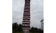 該塔為樓閣式磚木塔,外墻為土紅色,塔高45.5米,建筑是斗拱結(jié)構(gòu),平面六角九層、塔內(nèi)空心,有梯道可登,可旋登至塔頂,鳥瞰連江景色和連州全貌。塔的每層用磚砌出角柱、椽枋、斗拱、平座和檐面,其中第一層斗拱中用人字形拱托鴛鴦交手拱。塔頂有一個(gè)用生鐵鑄造的古塔頂蓋。當(dāng)年建塔時(shí),因塔頂蓋太重,無法提升上去,只好擱置在塔的旁邊。