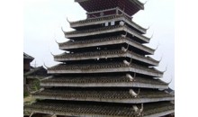 苗族鼓樓在臺(tái)江縣城東南方20公里的排羊鄉(xiāng)九擺村上寨中間,樓旁古木參天,蒼翠綠郁。 鼓樓為三重檐歇山頂屋面,木結(jié)構(gòu)建筑,覆蓋小青瓦,其 下層呈平面四方形,空間寬敞。樓高11米,占地52平方米,整 個(gè)建筑結(jié)構(gòu)以中間獨(dú)柱為中心,周圍16根外環(huán)檐柱為襯。利用 逐層內(nèi)收的粱、枋、瓜柱、檐柱支撐挑出屋檐。結(jié)構(gòu)無(wú)一釘一 鉚,攆橫穿斜插,銜接緊密牢固。前后留進(jìn)出通道。