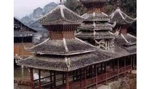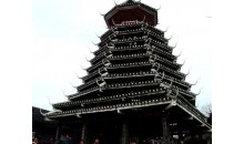 地坪風(fēng)雨樓 這是貴州省最大、造型最美的風(fēng)雨橋。長達(dá)50多米的地坪風(fēng)雨橋始建于清光緒二十年即公元1894年,1959年毀于火災(zāi),1964年重建。整座橋不用一釘一鉚,而運(yùn)用杠桿力學(xué)原理,將大小不一的柱、枋、檁、凳、欄桿等全部用杉木鑿榫穿枋構(gòu)成。橋體為長廊式木結(jié)構(gòu),橋上有一大兩小共三座橋樓。居中的大橋樓是鼓樓式建筑,兩邊的橋樓皆為三層重檐雙斜面屋頂。